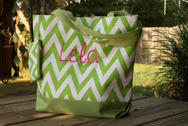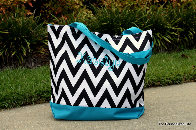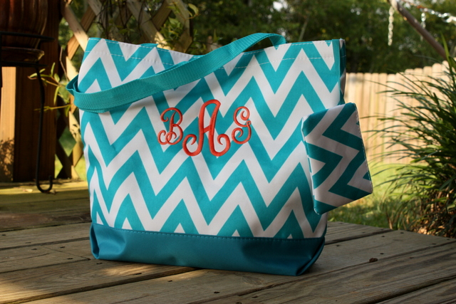 This Chevron Tote bag will come sewn with your choice of a single letter, traditional 3 letter monogram, or name. Select your chevron bag color, font choice, and thread color for a bag that is uniquely yours!