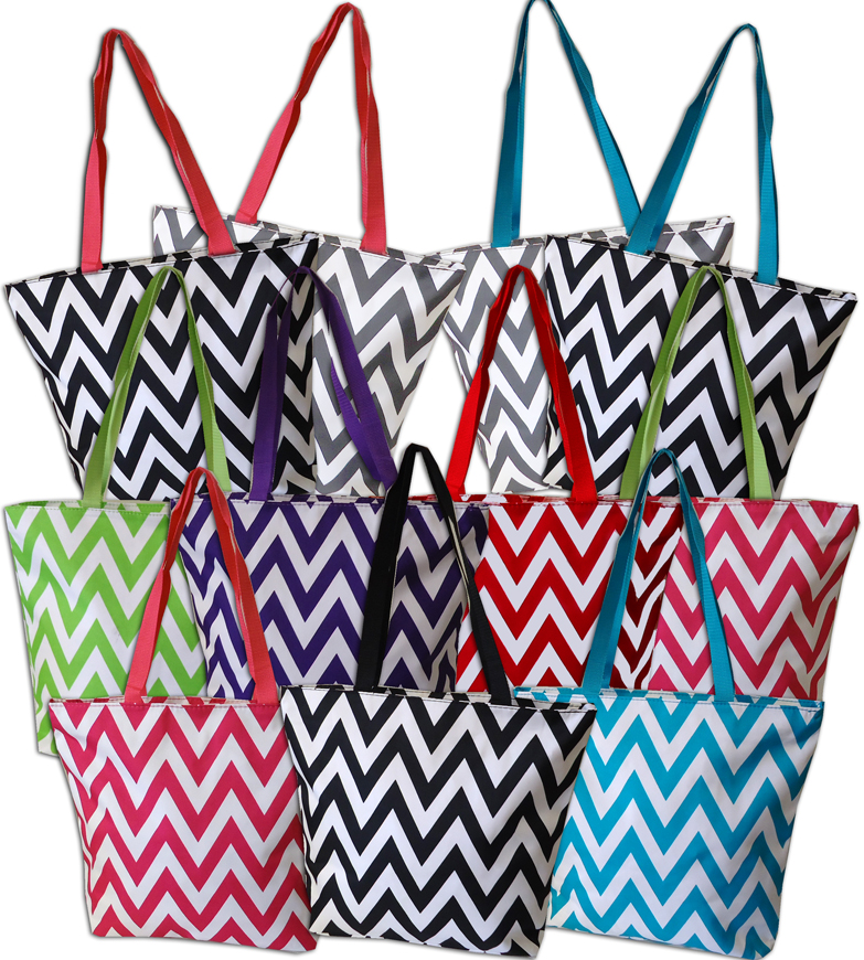 This Zippered Chevron Tote bag will come with a single letter, traditional 3 letter monogram, or name sewn in the font and thread color of your choice.