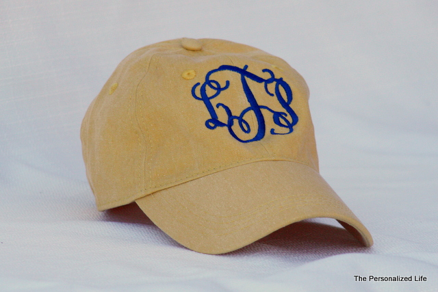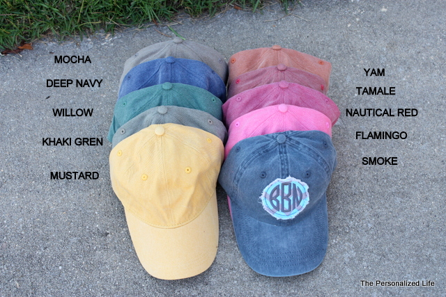 Our pigment dyed ball caps come in lots of great colors! Choose your font and thread color for a hat that is uniquely you! What better way to hide a bad hair day or protect yourself from the sun than with an adorable monogrammed hat!