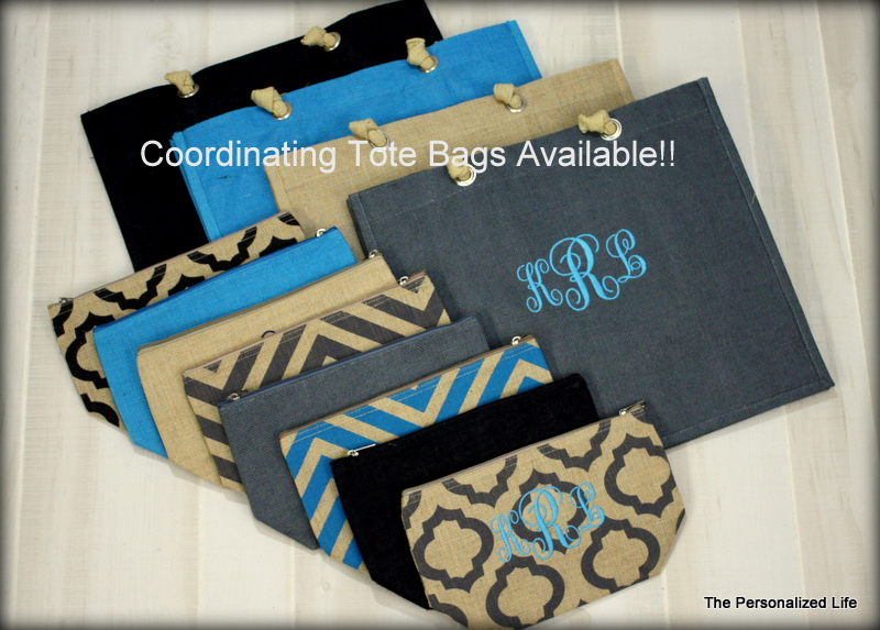 What a great cosmetic bag! This adorable bag can be used as a cosmetic bag or a clutch! It's the perfect size measuring 12" wide, 7" tall, and 4" deep at the bottom. The zipper closure keeps everything safe inside, and the burlap has a poly backing making it sturdy and easy to clean.