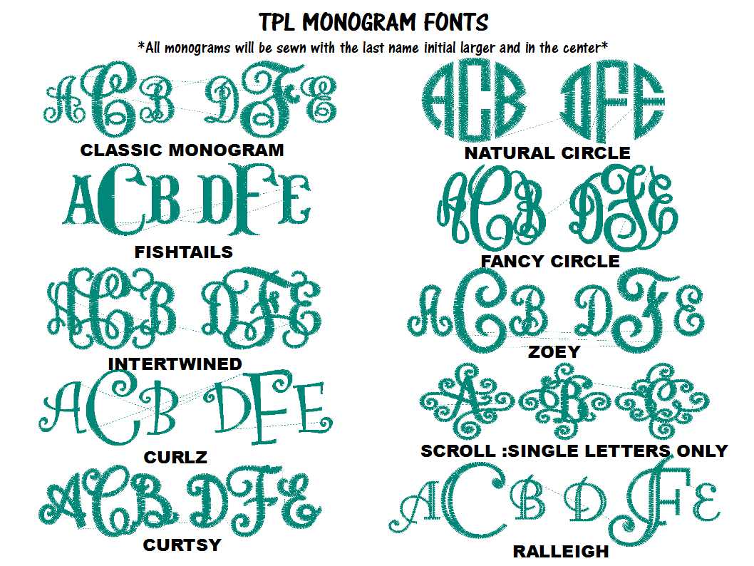 These fonts are traditional 3 letter monograms or single initial monograms.