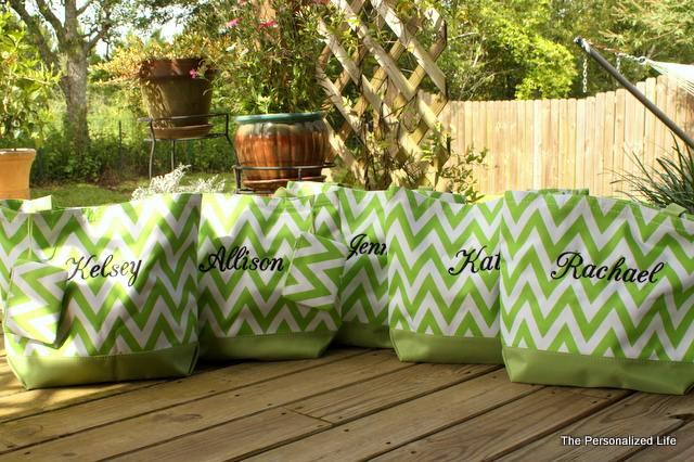 Choose between chevron or quatrefoil print bags for this set of 5. Decide if you would like a single letter, traditional 3 letter monogram, or name sewn. Then choose your font and thread color. Each bag in the set can be different so feel free to be creative!