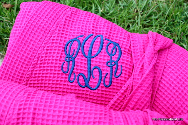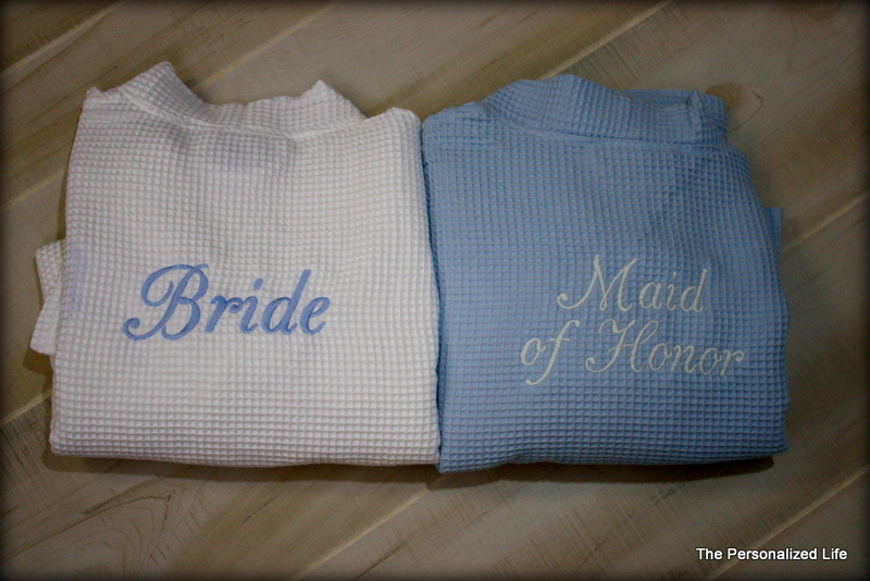 Your set of five 100% cotton waffle weave robes will each be be sewn with a 3 letter monogram or name on the front left chest. Choose your font and thread color to personalize your robes. Each robe in the set can be different, so feel free to be creative!